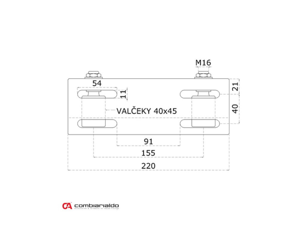 nerezové horné vedenie brány so 4 vodiacimi kolieskami (40x45mm / M16), nerez /AISI304Počet kusov v balení - 4.