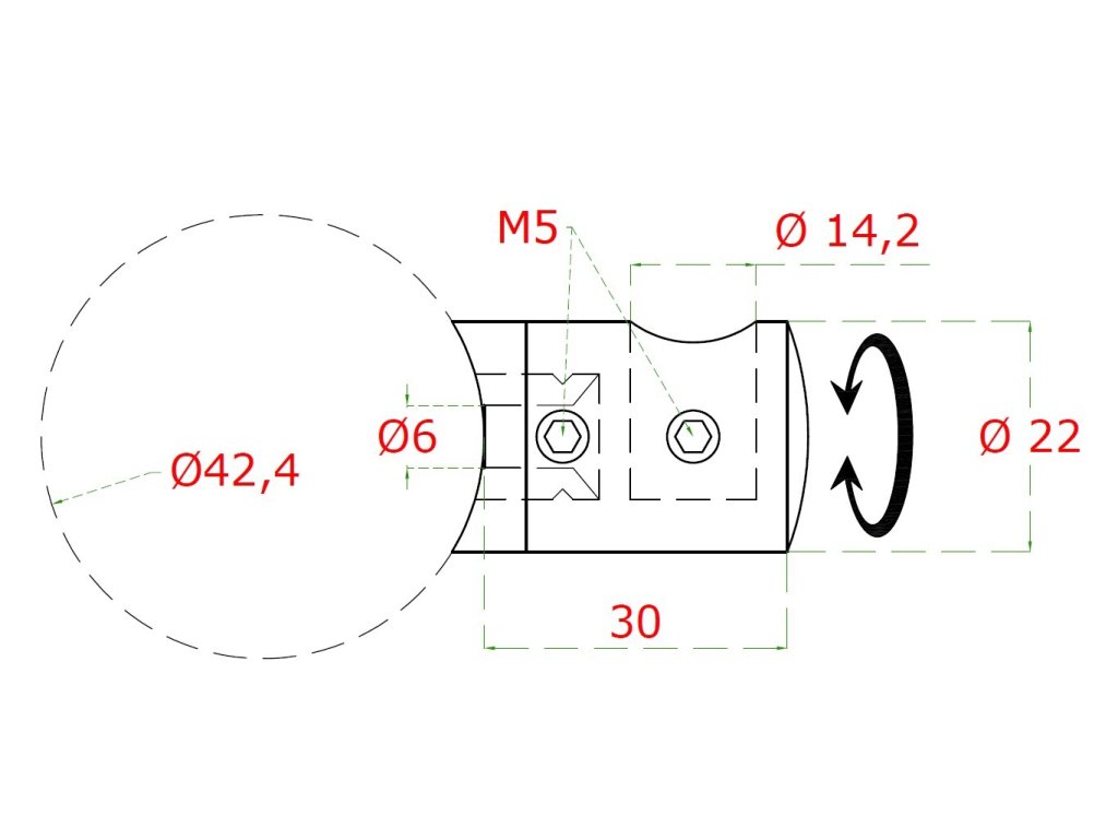 držiak tyče ø 14mm (koncový-ľavý) na trubku ø 42.4mm (30x22mm), brúsená nerez K320 /AISI304Dodatočné parametre