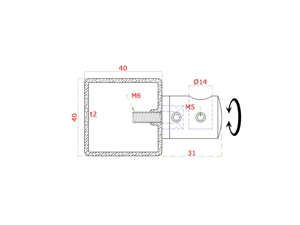 držiak tyče ø 14mm (koncový-ľavý) plochý (30x22mm), brúsená nerez K320 /AISI304Dodatočné parametre