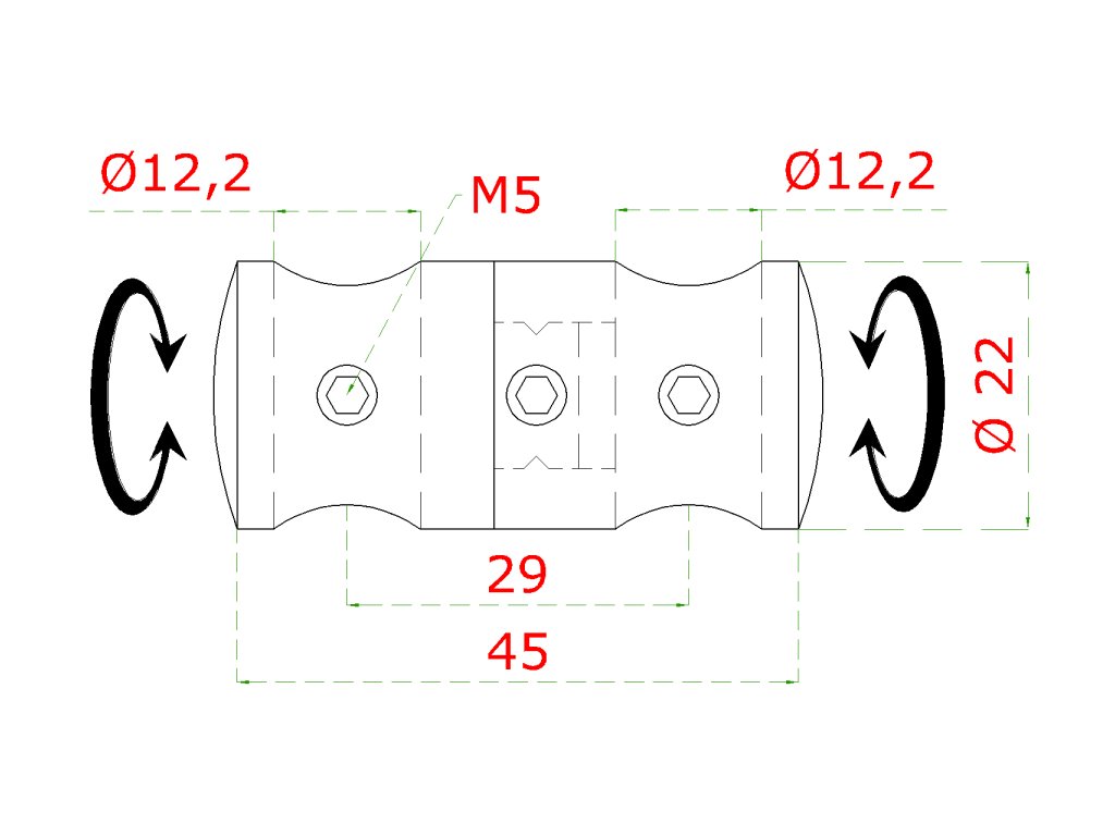 držiak tyčí ø 12/12mm prechodný-otočný (45x22mm), brúsená nerez K320 /AISI304Dodatočné parametre