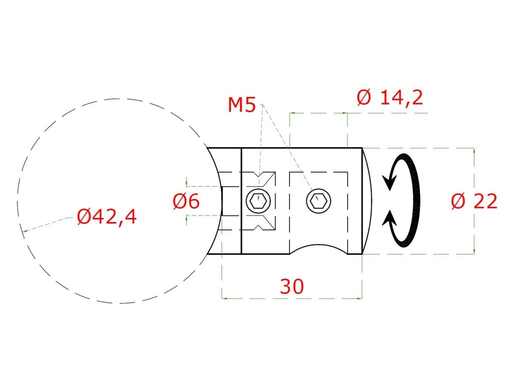držiak tyče ø 14mm (koncový-pravý) na trubku ø 42.4mm (30x22mm), brúsená nerez K320 /AISI304Dodatočné parametre