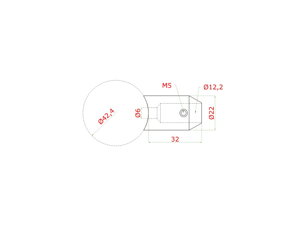 držiak tyče ø 12mm koncový na trubku ø 42.4mm (33x22mm), brúsená nerez K320 /AISI304Dodatočné parametre