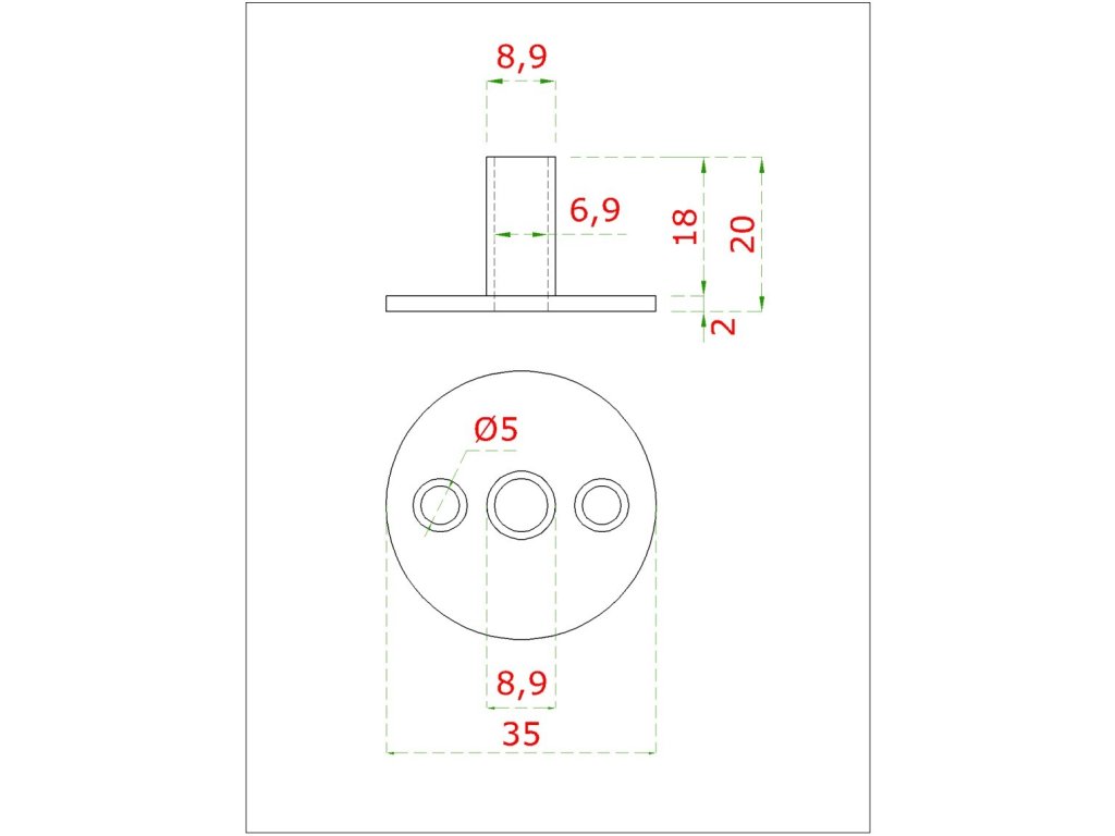 Príruba spodná ø 35mm, na trubku ø 12 mm , (priemer príruby na trubku ø8.9mm), brúsená nerez K320 /AISI304