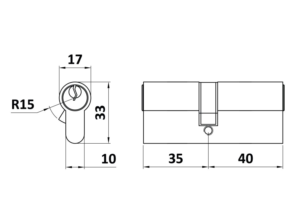 cylindrická vložka 30x45mm, mosadzná, 3 kľúče, skrutka M5x65mmDodatočné parametre