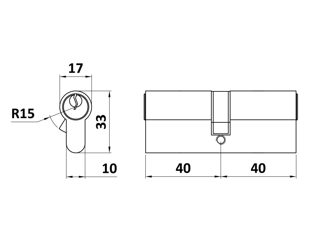 Cylindrická vložka EURO 40/40mm, niklová, 3 kľúče, skrutka M5x65mm