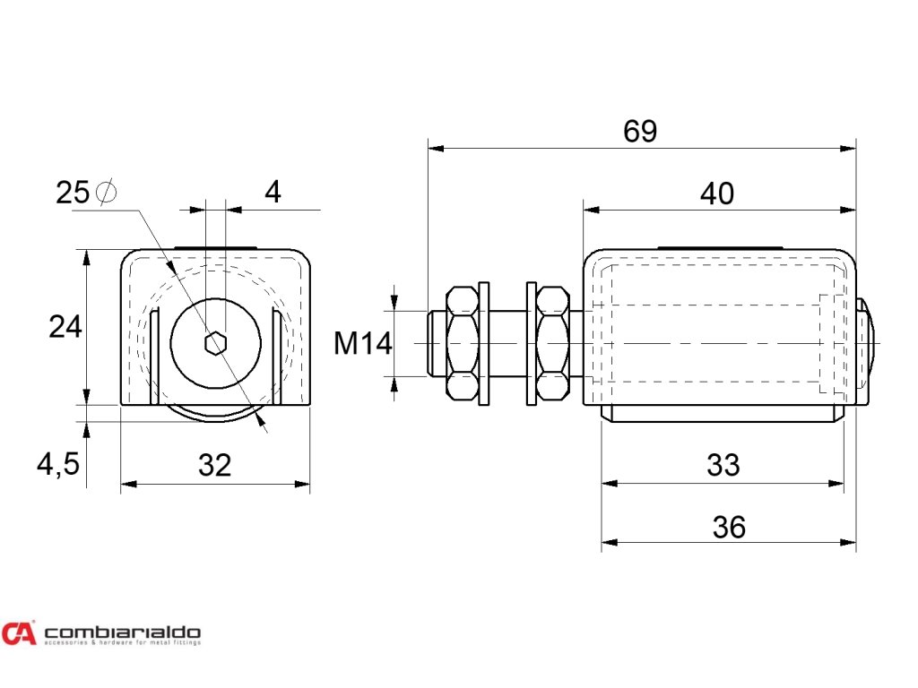 nylonový vodiaci valček ø25, H-30mm, závit M14 s ochrannou krytkou pre horné vedenie posuvnej brány.Počet kusov v balení - 20.