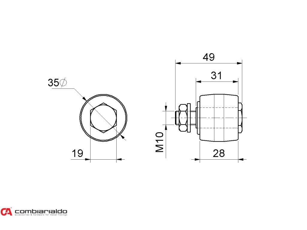 nylonové vodiace koliesko 35x30mm, závit M10 pre horné vedenie posuvnej brány.Počet kusov v balení - 10.