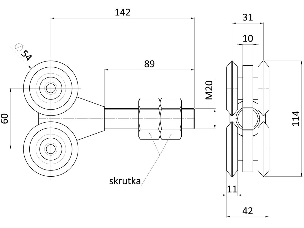 vozík pre závesný systém, 4 kolieska, do 420kg, uzatvorené ložiská, pre profil C920G