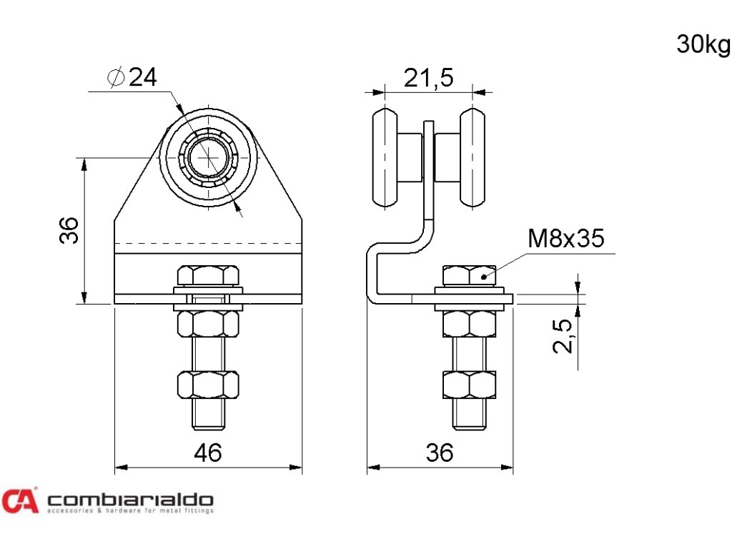 vozík závesný Combi Arialdo, 2 kolieska pre profil C920 Piccolo, nosnosť 30kg