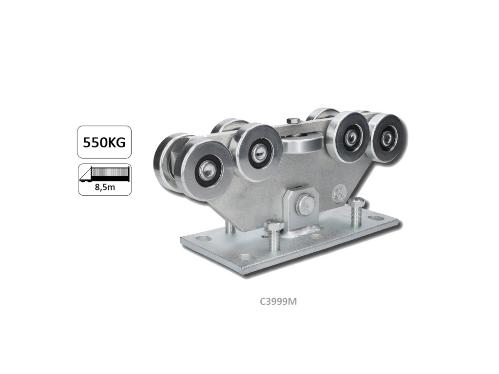 Samonosny systém vozíka od popredného talianského výrobcu Combi Arialdo. Povrchová úprava- pozink. Použitie pre posuvné brány. Kombinácia s kolajnicou C399M/Fe a C399M/Zn.Dodatočné parametre