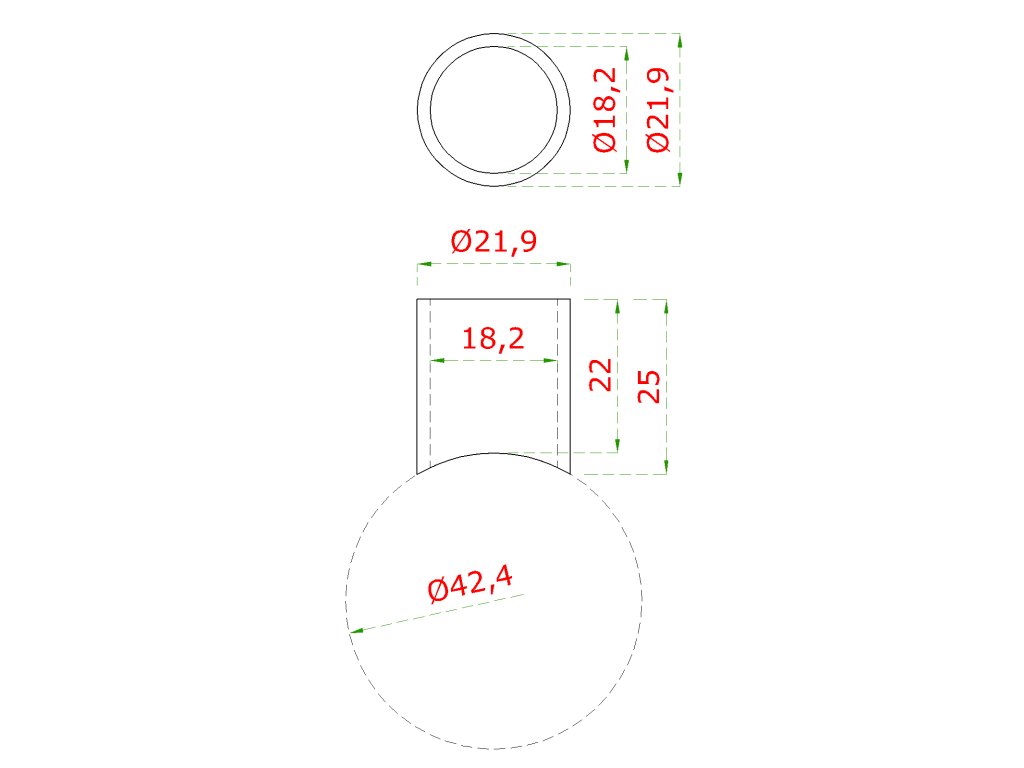 DOPREDAJ prechod na vymedzenie vzdialenosti medzi stĺpom ø 42.4mm a kotviacou platňou, ø 22x1.9mm /L:22mm, bez vnútornej skrutky brúsená nerez K320 /AISI304