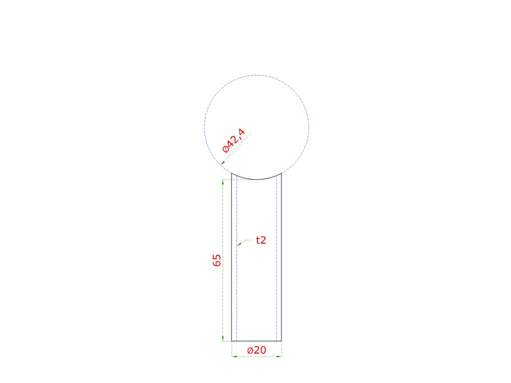 přechod na vymezení vzdálenosti mezi sloupem ø 42.4mm a kotevní deskou, ø 20x2.0mm /L:65mm, bez vnitřního šroubu broušená nerez K320 /AISI304, bal: 1ksDodatočné parametre