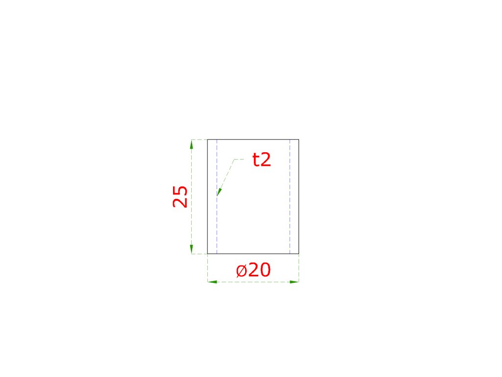 prechod na vymedzenie vzdialenosti medzi stĺpom (plochý) a kotviacou platňou, ø 20x2.0mm /L:25mm, bez vnútornej skrutky, brúsená nerez K320 /AISI304, bal: 1ksDodatočné parametre