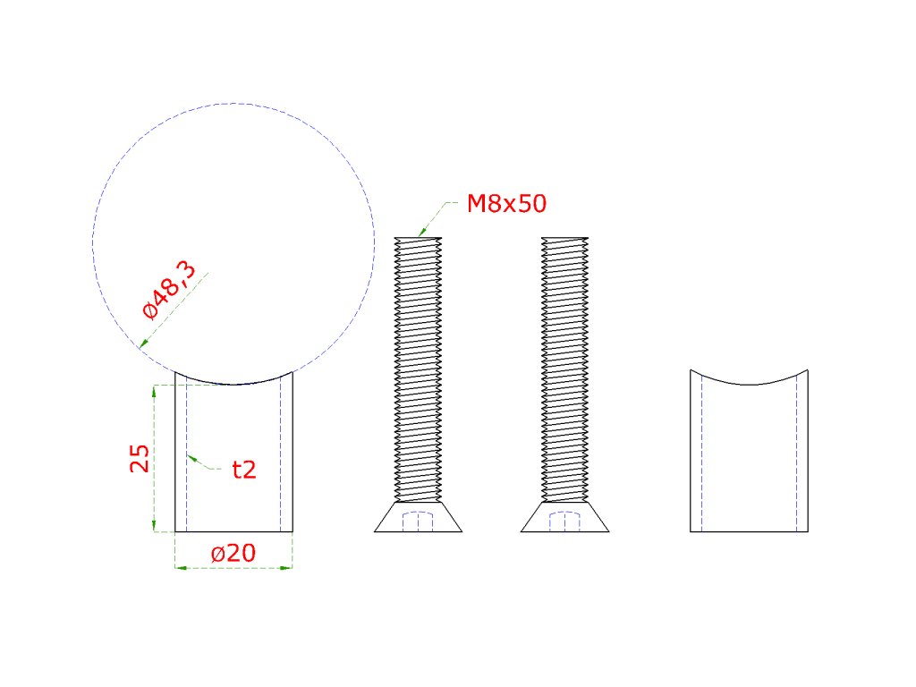 prechod na vymedzenie vzdialenosti medzi stĺpom ø 48.3mm a kotviacou platňou, ø 20x2.0mm /L:25mm, vnút. skrutka: M8x50mm, brúsená nerez K320 /AISI304, bal: 2ksDodatočné parametre