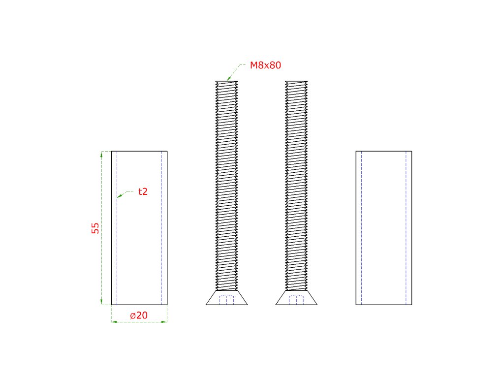 prechod na vymedzenie vzdialenosti medzi stĺpom (plochý) a kotviacou platňou, ø 20x2.0mm /L:55mm, vnút. skrutka: M8x80mm, brúsená nerez K320 /AISI304, bal: 2ksDodatočné parametre