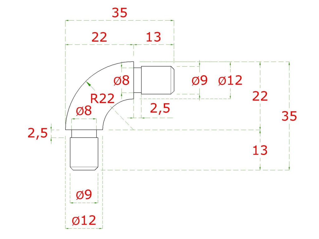 spoj oblúkový 90° (plný materiál) na trubku ø 12mm, brúsená nerez K320 /AISI304Dodatočné parametre