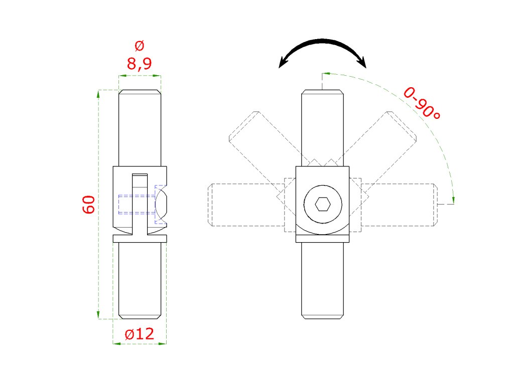 spoj nastaviteľný (0-100°) plný materiál, s kĺbom, na trubku ø 12mm, brúsená nerez K320 /AISI304Dodatočné parametre