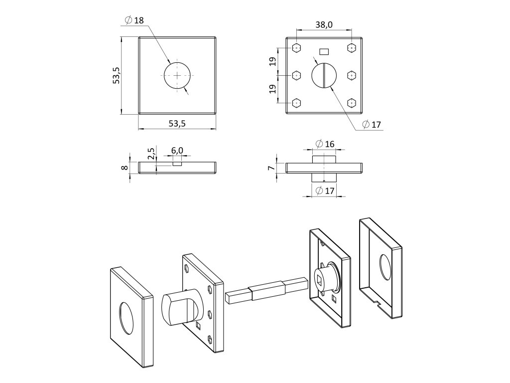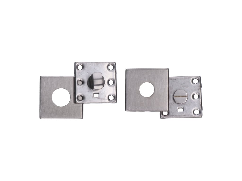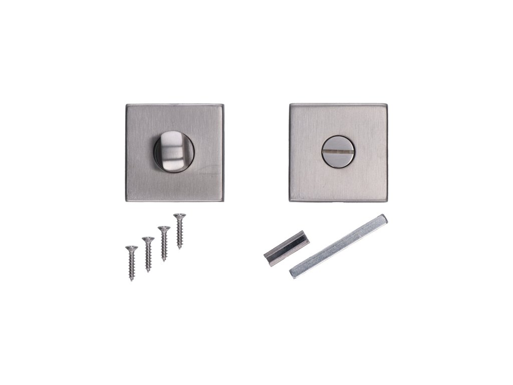 štvorcová rozeta s uzamykacou páčkou na WC dvere (53x53x10mm), rozmer páčky: 22x12x25mm, brúsená nerez K320 /AISI304