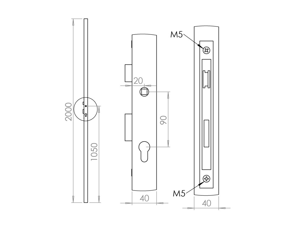 Profil 40x40x2mm H-2000mm so zámkom ZM90/35H, pravý