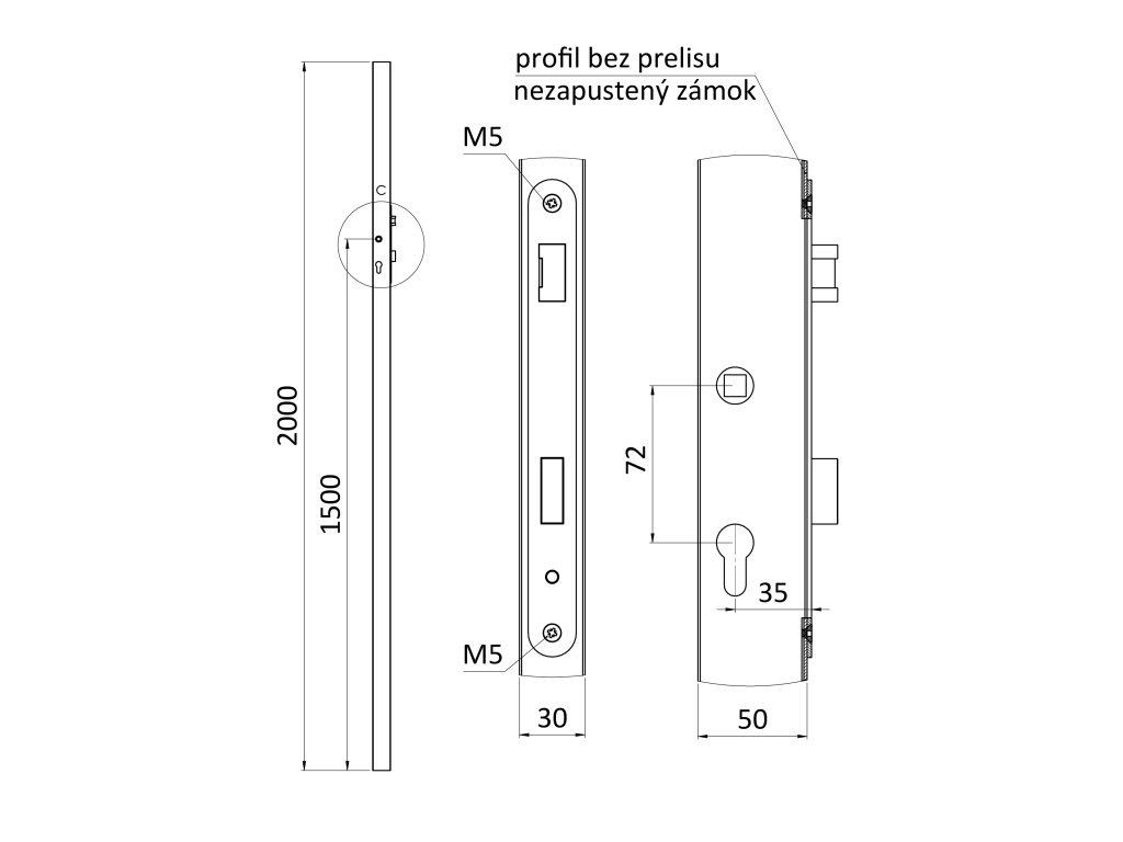 Profil 50x30x1.5mm, H-2000mm so zámkom bez zapustenia