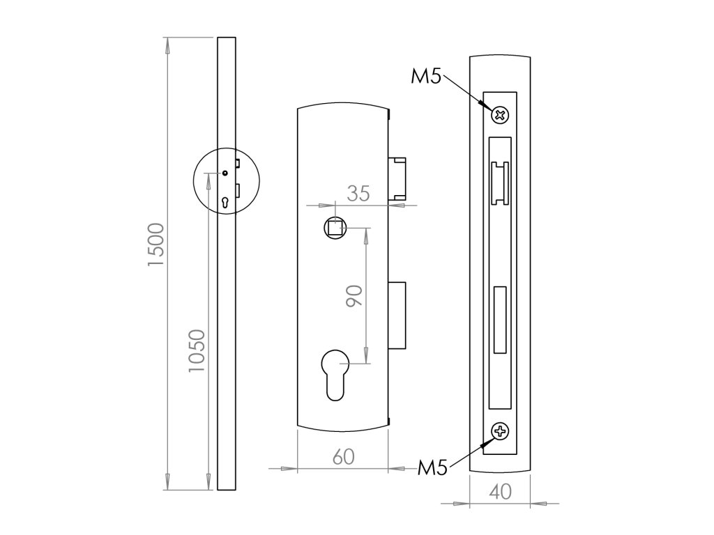 Profil 60x40x2mm H-1500mm so zámkom ZM90/50H, ľavý
