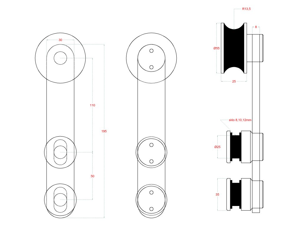 pojazdový vozík k vodiacemu profilu pre závesný systém, brúsená nerez K320 /AISI304Dodatočné parametre