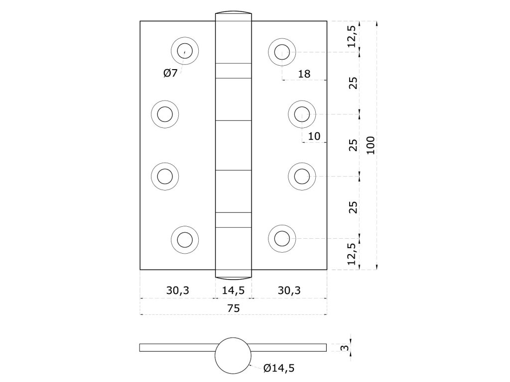 nerezové pánty 2ks, 100x75x3mm, max. nosnosť: 80 kg, brúsená nerez K320 /AISI304Dodatočné parametre