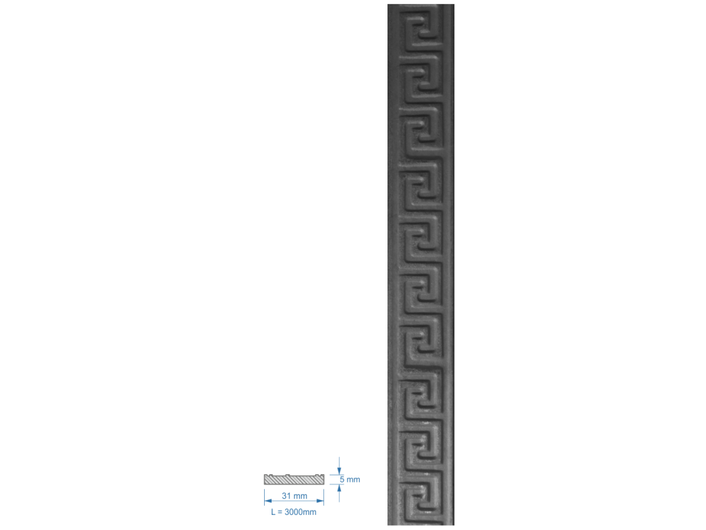plochá tyč vzorovaná 31x5mm, čierna S235, L-3000mm, Cena je uvedená za 3m kus