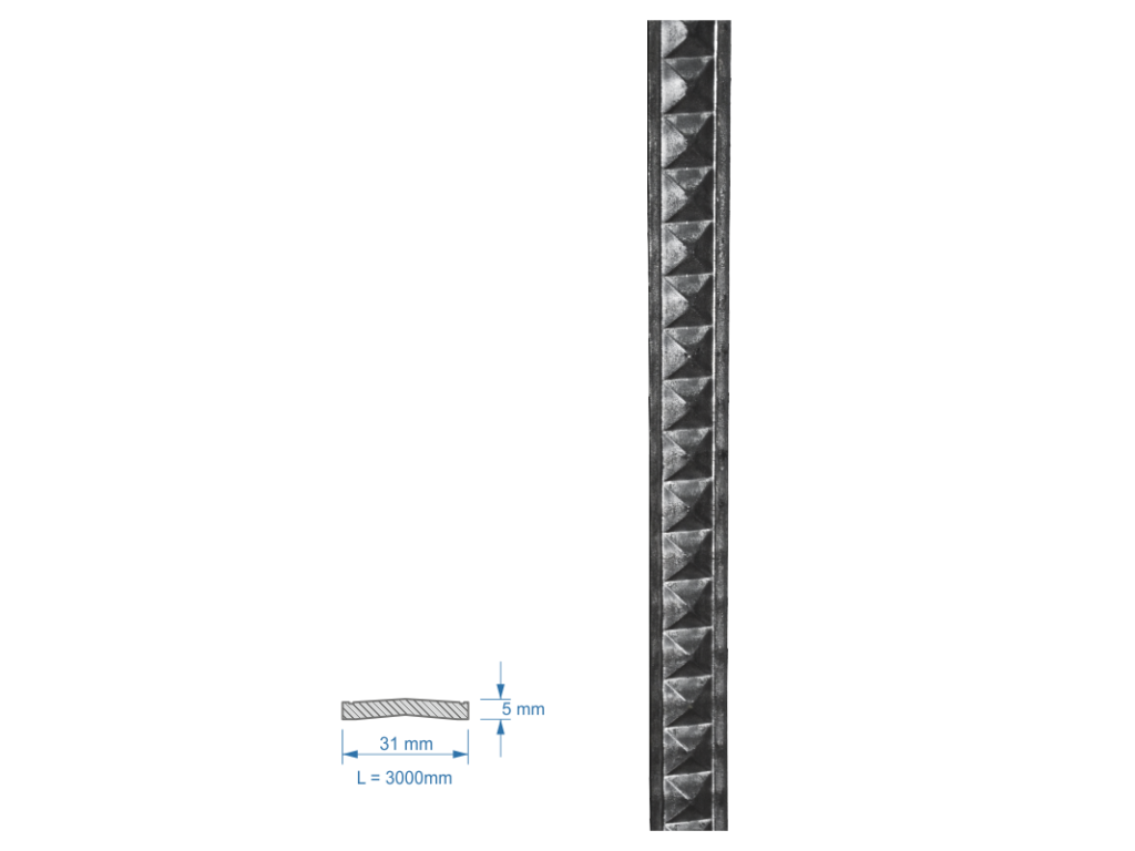 plochá tyč vzorovaná 31x9mm, L-3000mm, cena za 1mDodatočné parametre