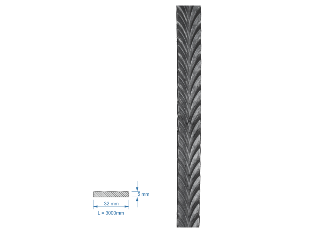 plochá tyč vzorovaná 32x5mm, L-3000mm, cena za 1mDodatočné parametre