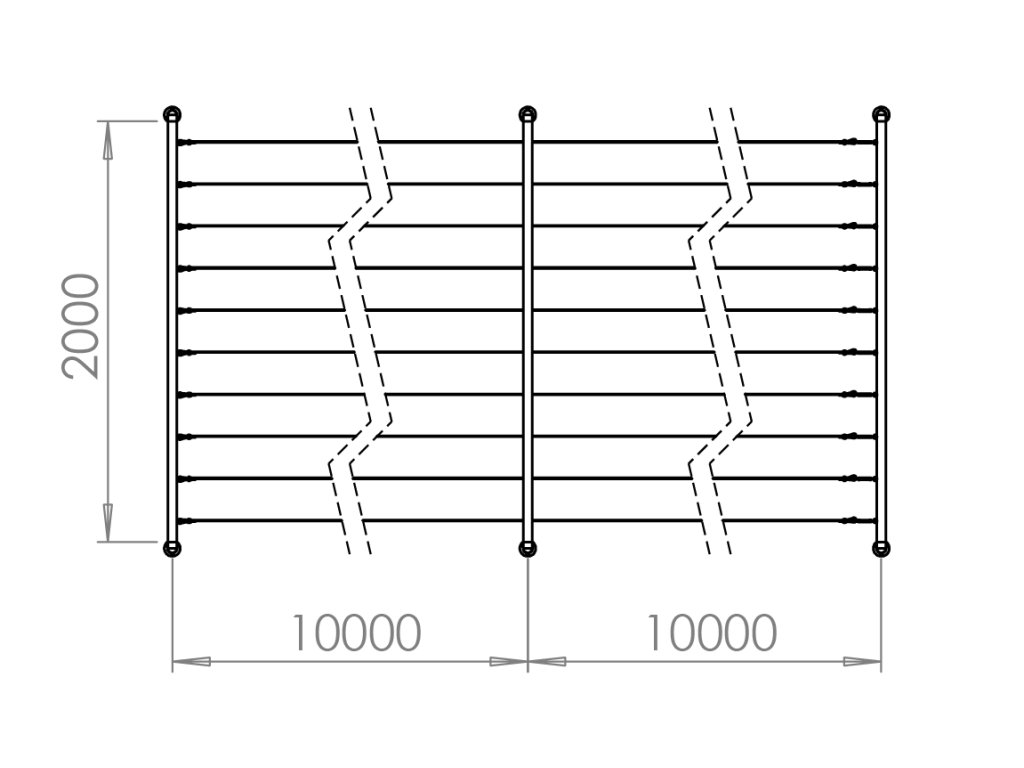 Príklad inštalácie zelenej steny pre rozmery 2x20 metrov.