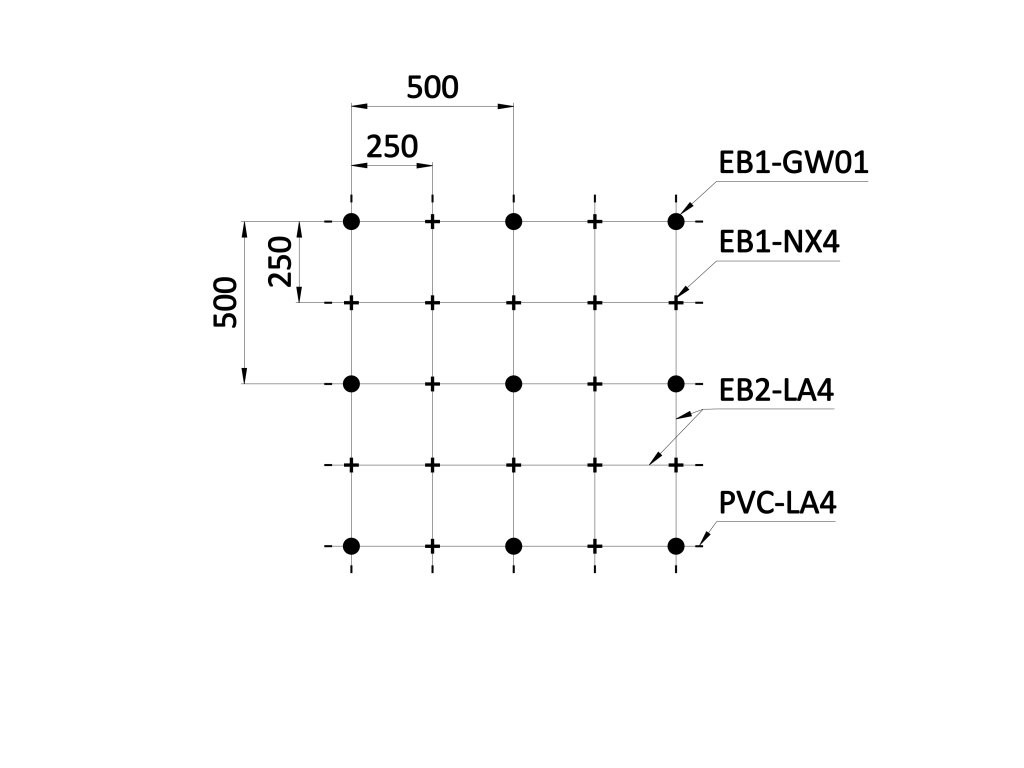 Montážna sada pre zelenú stenu - nerez, rozmer 2x1m. Set obsahuje: EB1-GW01 (15ks), PVC-LA4 (28ks), EB2-LA4 (25m), EB1-NX4 (22ks)
