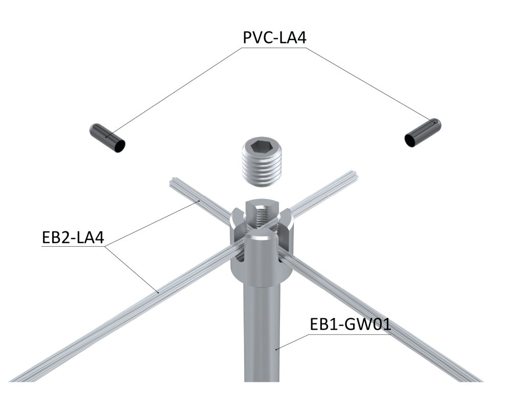 Montážna sada pre zelenú stenu - nerez, rozmer 2x2m. Set obsahuje: EB1-GW01 (25ks); PVC-LA4 (20ks); EB2-LA4 (25m)