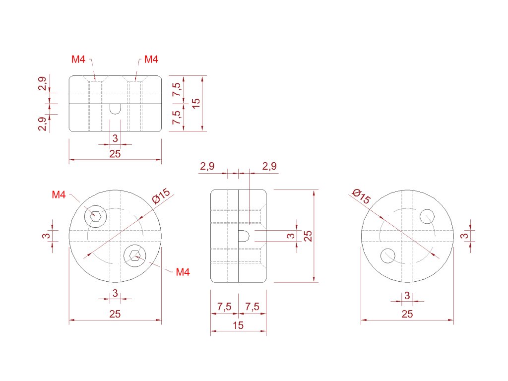 spojka pre dve nerezové lanká priemeru ø3mm, materiál plast