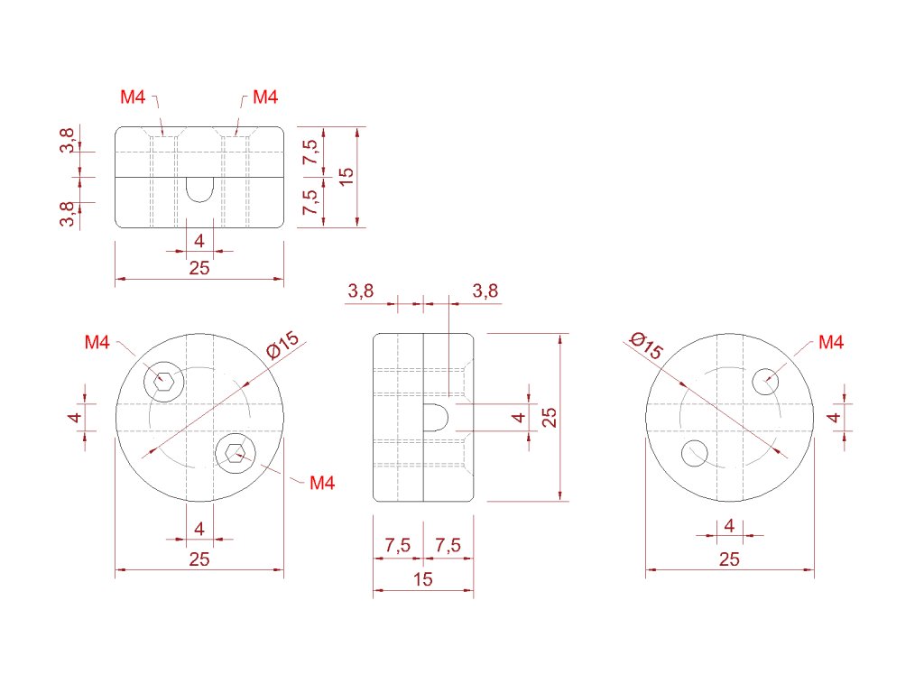 spojka pre dve nerezové lanká priemeru ø4mm, materiál plast