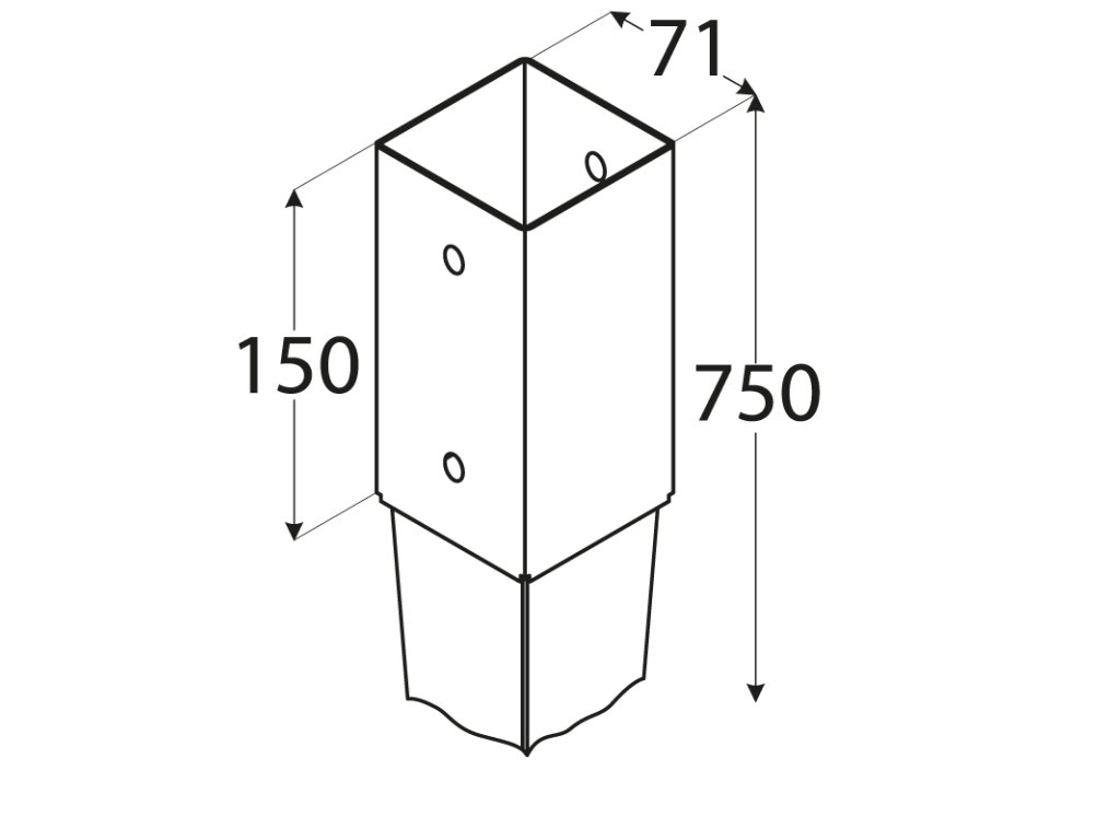 pätka stĺpika nabíjacia/kotviaci hrot 71x150x750mm, 1,8mm žiarový pozink, počet dier s priemerom 11mm-4ks