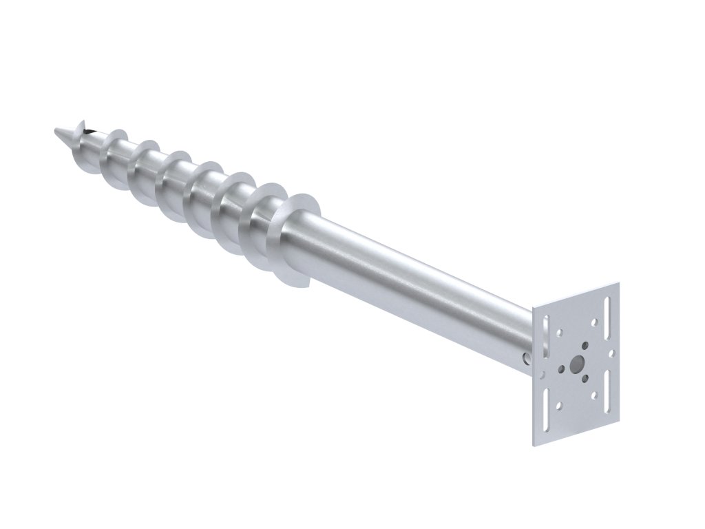 Zemná skrutka, zemný vrut alebo skrutka do zeme - tento jednoduchý a účinný vynález má mnoho názvov. Zemné skrutky fungujú rovnako ako betónový stĺpik alebo pilót, dokonca ho v niektorých ohľadoch prekonávajú. S našimi skrutkami do zeme môžete rýchlo a jednoducho vztýčiť stabilný základ a okamžite začať s výstavbou.Bez betónu, nemusíte si robiť starosti s kopaním, miešaním alebo čakaním na zatvrdnutie betónu, zemné skrutky sa dajú naplno zaťažiť ihneď po inštalácii.