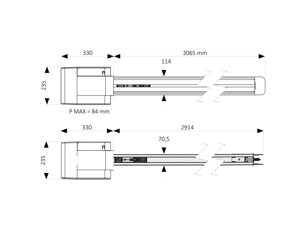 - Rovnaká hlava pohonu pre vodiace lišty s LED a bez LED.