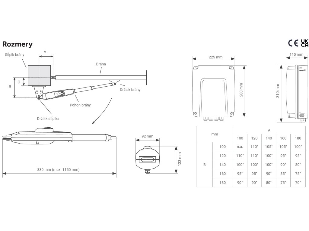 - Bezpečnosť: Pohon bezpečne uzatvorí bránu bez potreby elektrického zámku. Pri výpadku elektrického prúdu je chránený mechanickou brzdou.