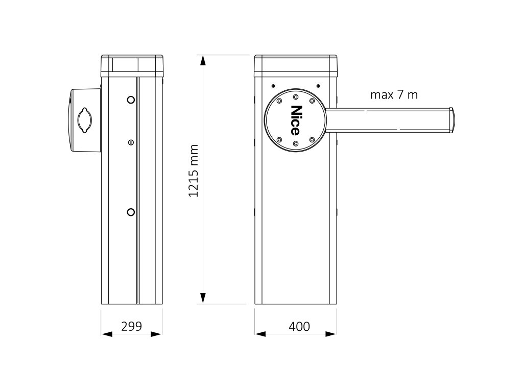 - Bočné odblokovanie s trojhranným kľúčom Nice, možnosť montáže na obe strany.
