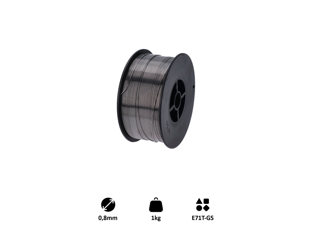 drôt zvárací FLUX - 0.8mm, 1kg, Metóda: MIG (Flux / FCAW) ; Priemer cievky: 100 mm ; Vnútorný priemer: 17 mm